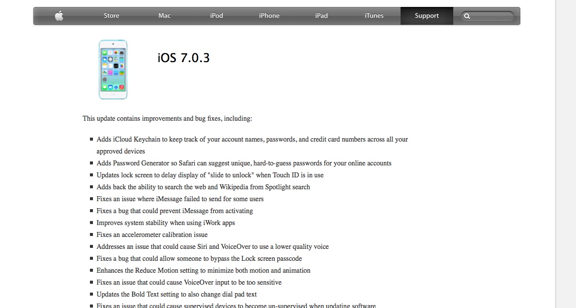Ecco quali sono i miglioramenti e le correzioni dei bug apportati dal nuovo iOS 7.0.3: