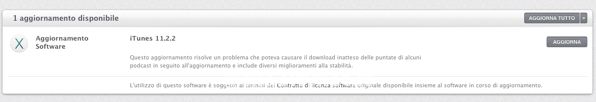 Apple ha rilasciato nella giornata odierna iTunes 11.2.2, un aggiornamento minore per il noto software Windows e Mac, che corregge un bug relativo ai podcast, che fino ad oggi, in alcuni casi, venivano scaricati in modo imprevisto e non autorizzato.