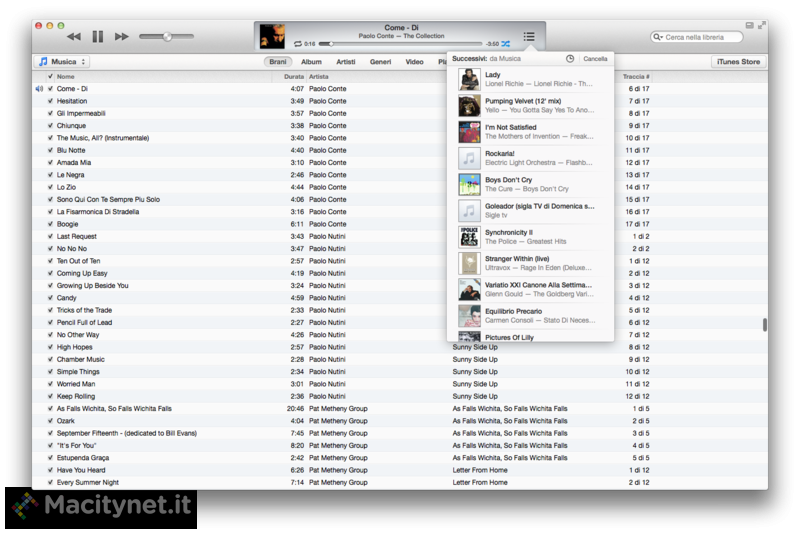 iTunes permette di vedere i brani i riprodotti e quelli di successiva riproduzione: basta fare click sull’icona dei successivi nel display centrale e appariranno subito. È anche possibile riordinare i brani, aggiungerne di nuovi o ignorarli in qualunque momento. Arriva anche un nuovo Mini Player che oltre che mostrare l’elemento in riproduzione, consente l’accesso a Successivi e rende semplice la ricerca di un elemento nuovo da riprodurre.