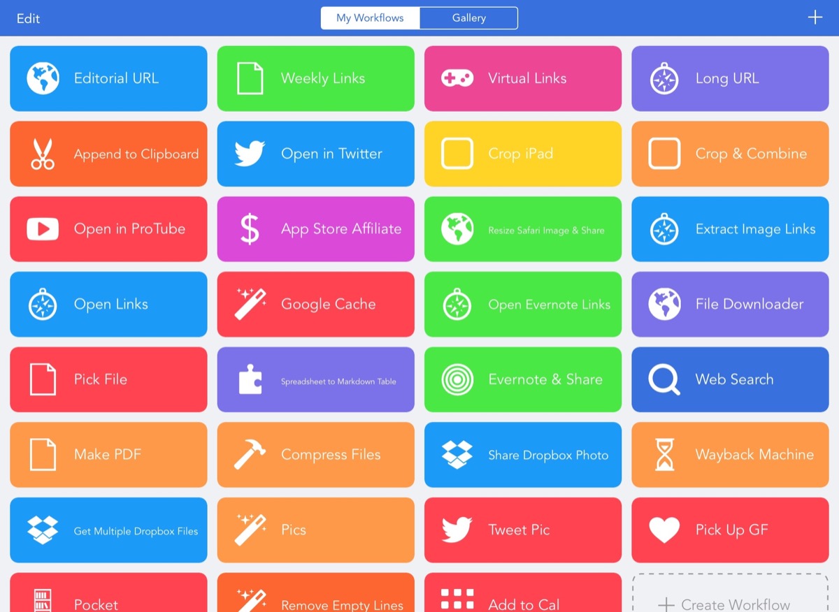 Ricordiamo che, in modo simile ad Automator su Mac, con Workflow è possibile concatenare una serie di azioni per rendere automatiche operazioni anche lunghe e complesse che risultano così eseguibili all’istante con un solo tap, come per esempio convertire più immagini in file GIF, pubblicare una foto o un post su più social contemporaneamente e molto altro ancora. Per i servizi offerti e la facilità d’uso Workflow era stata premiata con un Apple Design Award durante la conferenza mondiale degli sviluppatori WWDC 2015.