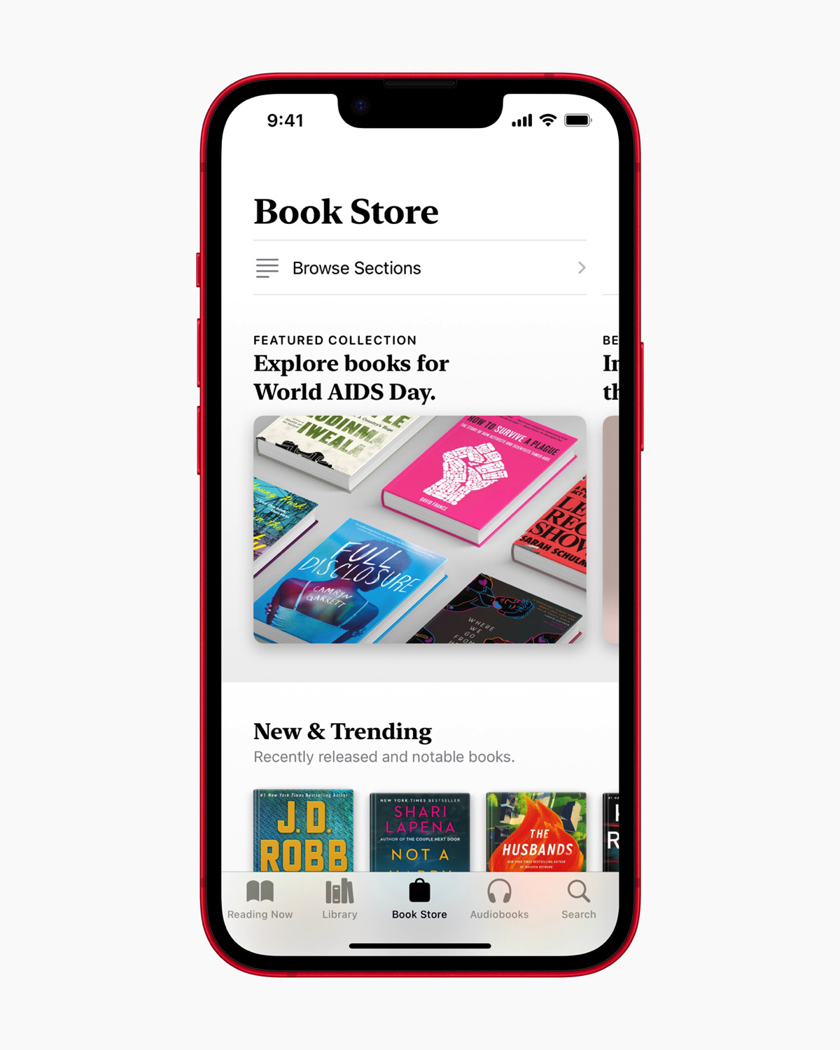 App Store sta promuovendo l’app Preppy, per il tracciamento della profilassi pre-esposizione, Apple Books presenta raccolte curate di saggistica e narrativa sull’AIDS. La scheda Guarda ora di Apple TV include una raccolta di programmi correlati, mentre Apple Music offre una selezione speciale di musica e programmi radiofonici dedicati all’argomento.