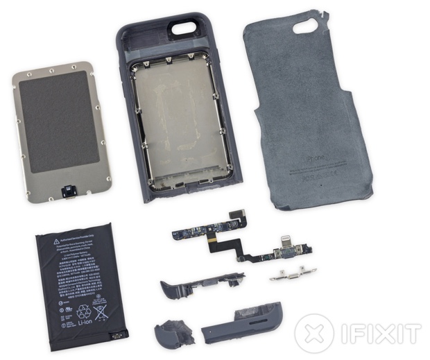Lo smontaggio di Apple Smart Battery Case conferma che ancora una volta Apple ha impiegato materiali di qualità elevata, per la precisione soffice microfibra all’interno e silicone resistente all’esterno. I tecnici apprezzano anche l’elevata qualità costruttiva: la batteria è protetta da un pannello in metallo che funge anche da rinforzo per la struttura della cover, in grado così di proteggere meglio iPhone 6 e iPhone 6s.