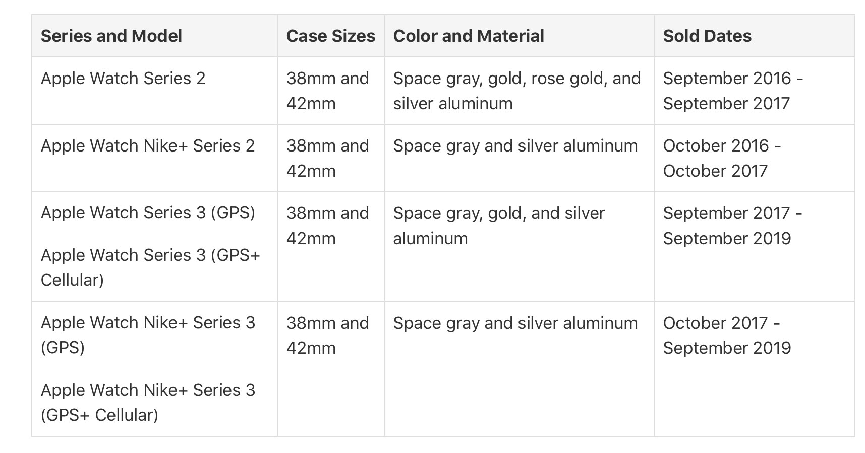 Apple o i centri di assistenza autorizzati da Apple sostituiranno gratuitamente gli schermi delle unità Apple Watch ammissibili che mostrano questo tipo di crepe. I modelli ammessi al programma di riparazione gratuito, sono quelli qui sotto elencati e includono: Apple Watch Series 2, Apple Watch Nike+ Series 2 , Apple Watch Series 3 con GPS, Apple Watch Series 3 con GPS + Cellular, Apple Watch Nike+ Series 3 con GPS e Apple Watch Nike+ Series 3 GPS + Cellular, nelle varianti da 38mm e 42mm.