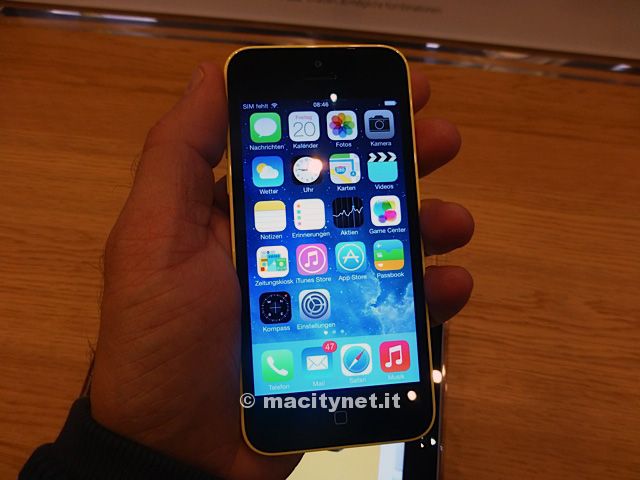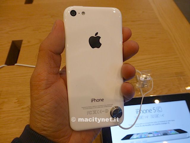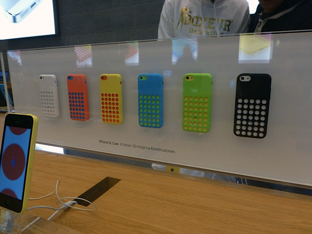 Dalle foto si notano anche le nuove custodie traforate e colorate che sono uno dei segni distintivi dei nuovi iPhone 5c. I pochi che abbiamo visto uscire con il telefono con dorso in plastica, avevano anche comprato una di queste custodie che danno al cellulare un’aria davvero molto particolare e giovanile.