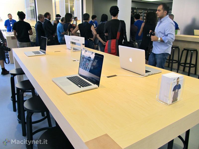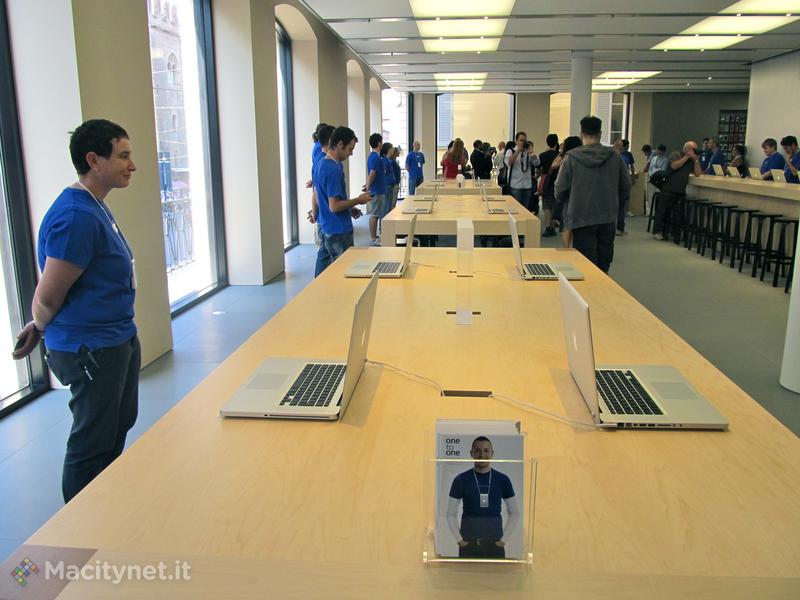 I dipendenti sono un centinaio, un numero che ha consentito di allestire il secondo Genius Bar d’Europa per numero di addetti. Il punto di assistenza è al secondo piano.
