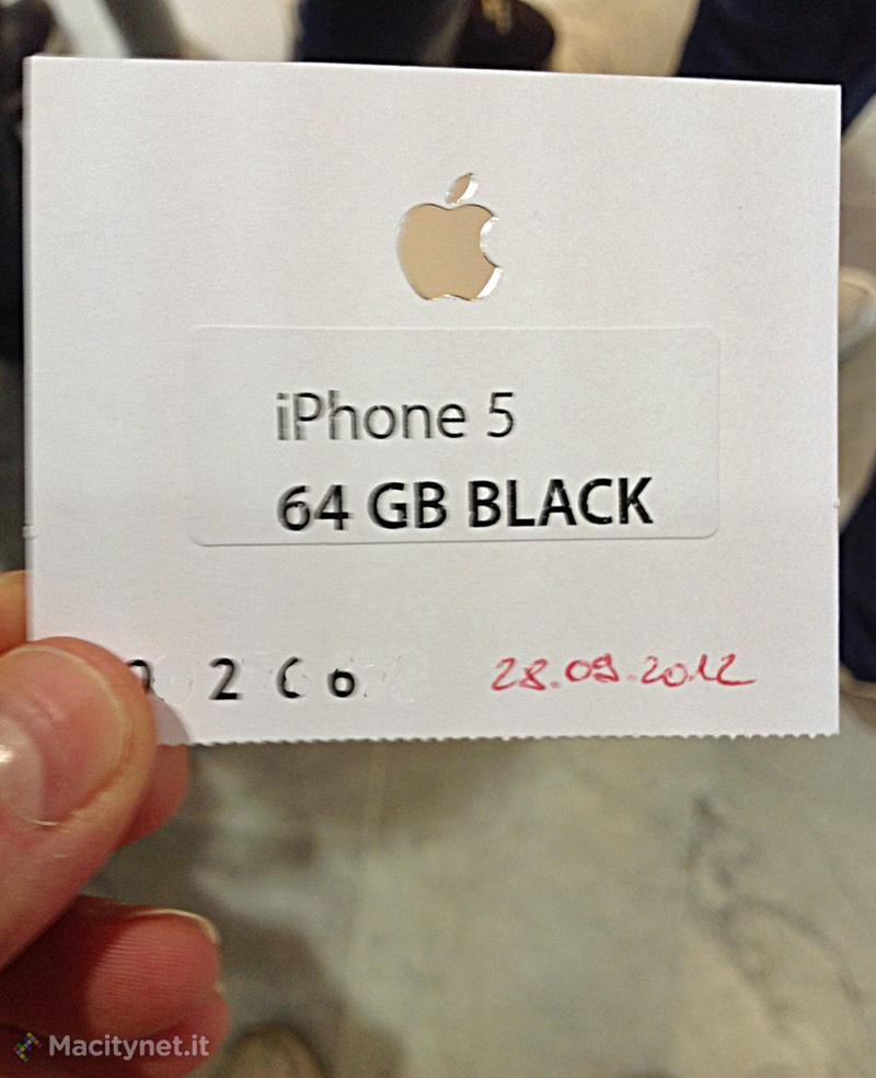 Ecco uno dei tagliandi, con numeri cancellari, che dà diritto all’acquisto di iPhone 5