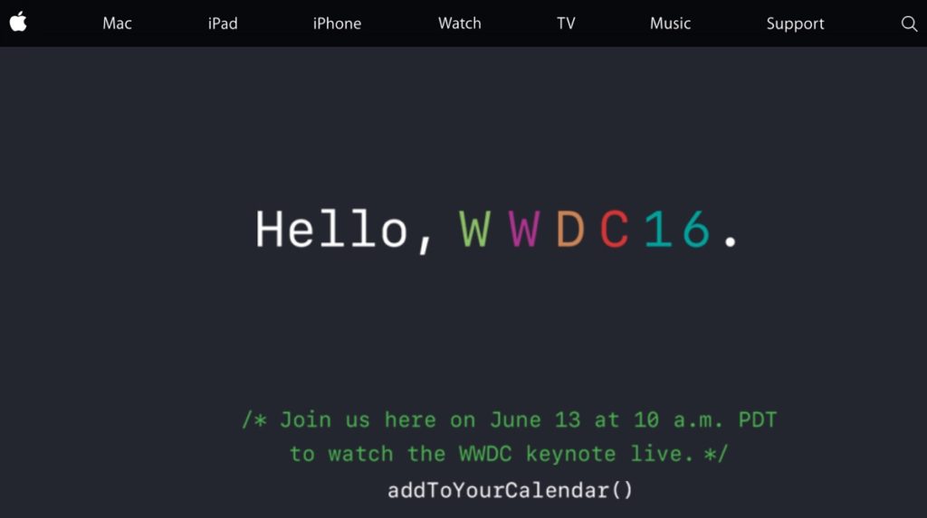 L’appuntamento con la presentazione Keynote WWDC 2016 è per lunedì 13 giugno alle ore 10 a San Francisco, le 19 di sera in Italia. Come sempre Macitynet seguirà l’evento con la trascrizione in diretta in Italiano più articoli e approfondimenti su tutte le novità in arrivo da Cupertino.