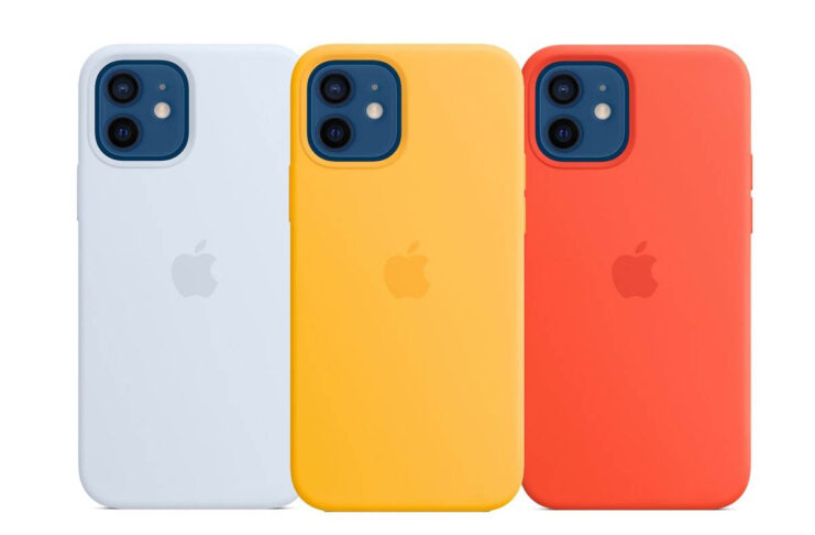 Apple offre nuove custodie MagSafe in silicone per iPhone 12 con tre nuove colorazioni: Sunflower (Giallo girasole), Cloud Blue (Azzurro nube) e Electric Orange (Arancione elettrico).