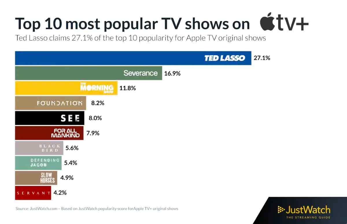 JustWatch, motore di ricerca per film e serie TV, ha pubblicato la classifica delle serie su Apple TV+ in ordine di popolarità.