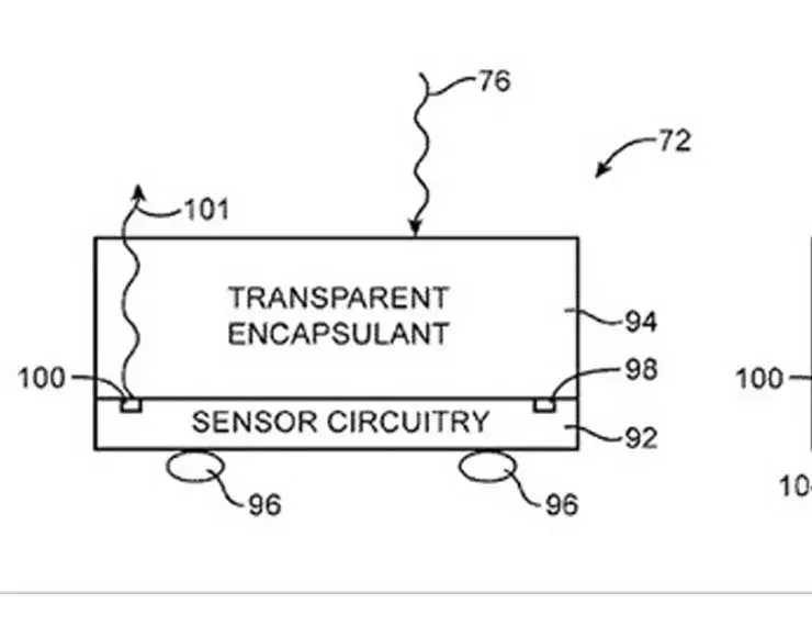 L’idea di Apple è di integrare il sensore direttamente in un layer del display, che a sua volta può essere sia OLED o LCD; in alcuni esempi allegati al brevetto si mostra il sensore in questione collocato nelle parti periferiche del display in modo da non essere influenzato dalle dita dell’utente che usano il touch. In altri esempi si mostra il sensore integrato in un layer TFT ma in tutti i casi sensori e circuiterie varie sono protetti da un incapsulamento trasparente di plastica o vetro.