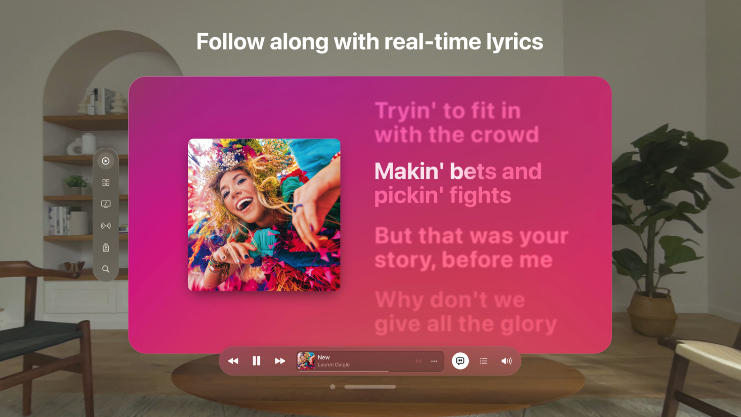 Apple sottolinea che le “esperienze spaziali” con Vision Pro possono trasformare qualsiasi stanza in un teatro personale dove assistere a eventi sportivi, programmi TV e film; si evidenzia ancora la possibilità di avere a disposizione nuovi modi per collaborare, creare e visualizzare contenuti digitali, trasportando l’utente in “splendidi” ambienti di gioco ed “entusiasmanti” luoghi.