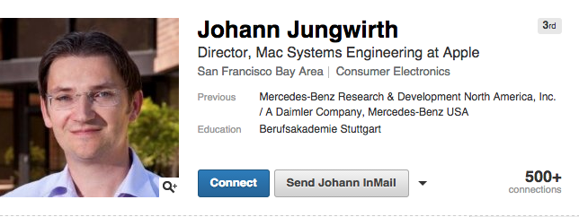 L’ipotesi nasce dalle indiscrezioni riportate dal Financial Times che fa sapere che durante gli ultimi mesi a Cupertino sarebbero approdati numerosi esperti nel settore automotive e nel design di veicoli per lavorare in un “laboratorio di ricerca top-secret”. Il team sarebbe guidato in persona da Jonathan Ive e formato da manager che si sono occupati dell’unità iPhone, affiancati da esperti del settore automotive, persone che hanno lavorato a progetti avanzati. Tra questi, da settembre, c’è Johann Jungwirth, ex CEO e presidente del reparto ricerca e sviluppo di Mercedes-Benz. Sul suo profilo Linkedin ora appare il ruolo di direttore del Mac Systems Engineering presso Apple ma le sue precedenti competenze riguardano il settore delle auto connesse, le auto che si guidano da sole, testing, regulatory affairs (supervisione delle procedure di autorizzazione per la commercializzazione dei prodotti) e altro ancora presso Daimler, produttore tedesco di automobili e di mezzi di trasporto controllata da Mercedes.
