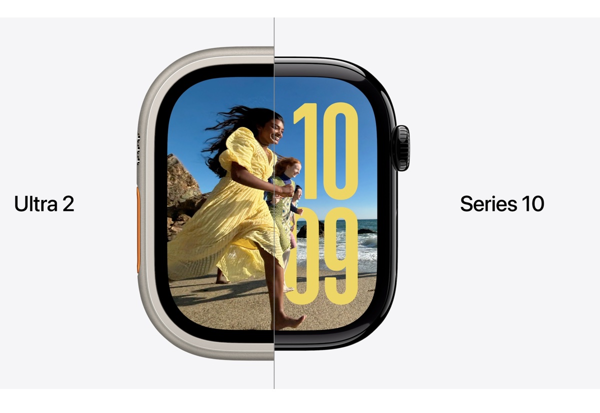 Nonostante le dimensioni di Apple Watch restino quasi le stesse, 42mm e 46mm, gli schermi sono molto più grandi: il 30% in più di quelli di prima generazione e il 9% in più di quelli di Apple Watch 7 in su. In pratica lo schermo di Apple Watch 10 ha le stesse dimensioni di quelle di Apple Watch Ultra.