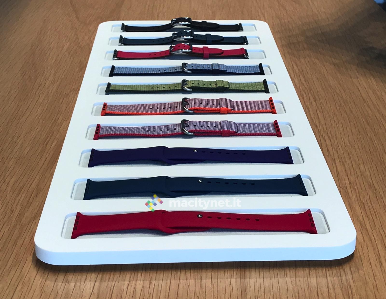 Dal vivo i nuovi cinturini Sport Loop (papaya, rosa fluo, blu notte, giallo fluo, nero, loop verde, conchiglia e rosa sabbia) rendono meglio che nelle foto, stesso discorso per le nuove colorazioni dei cinturini Sport (blu cobalto, viola scuro, verde olivo, bianco panna, grigio e così via. L’elenco è ancora lungo con i nuovi cinturini in nylon intrecciato, con diverse tinte che miscelano più colori diversi, fino ad arrivare ai più nuovi eleganti cinturini in pelle, anche questi in una varietà di nuove colorazioni.