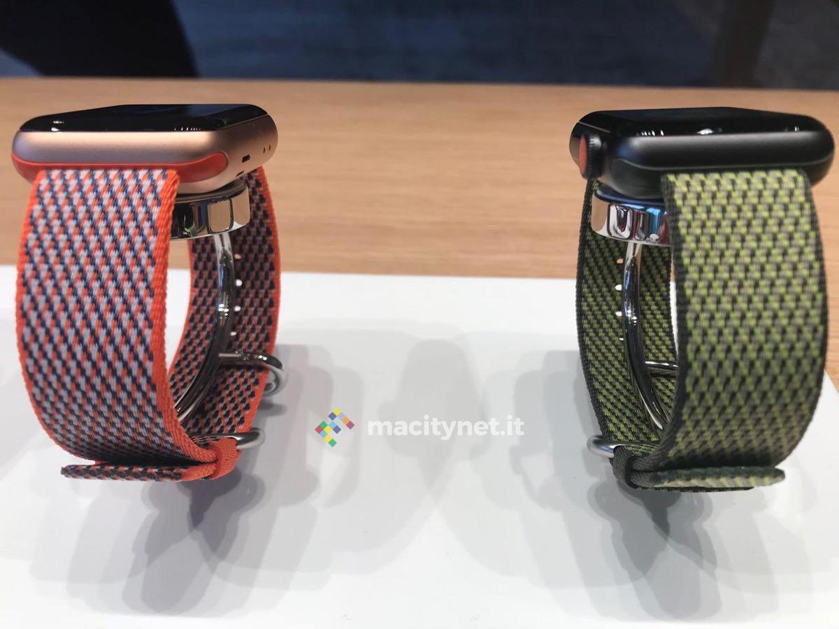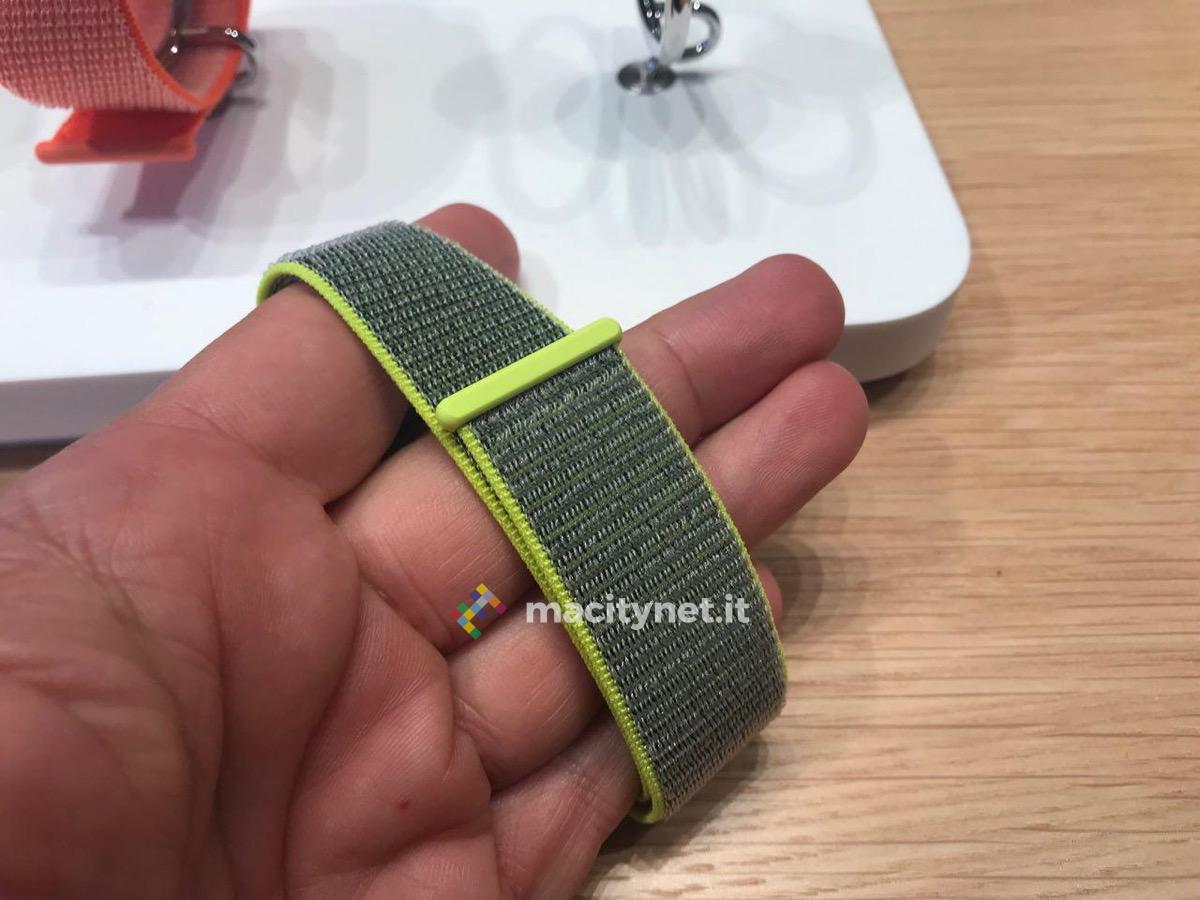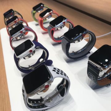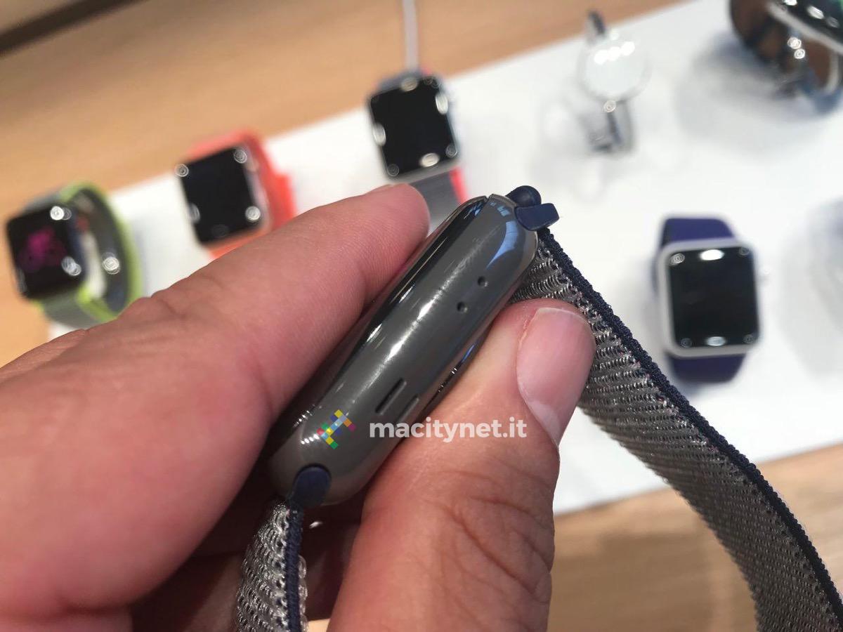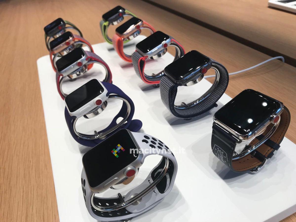 Tra l’altro abbiamo potuto toccare e provare da vicino i modelli LTE in ceramica nelle colorazioni disponibili: Apple Watch 3 GPS + Cellular era mostrato nella versione “Apple Watch Edition” con cassa in ceramica bianca o ceramica grigia abbinata a varie tipologie di cinturini e pure nelle versioni base con tutte le casse e le colorazioni della serie 3 standard: a distinguerli dal resto della compagine l’inconfondibile “bollo” rosso sulla corona.