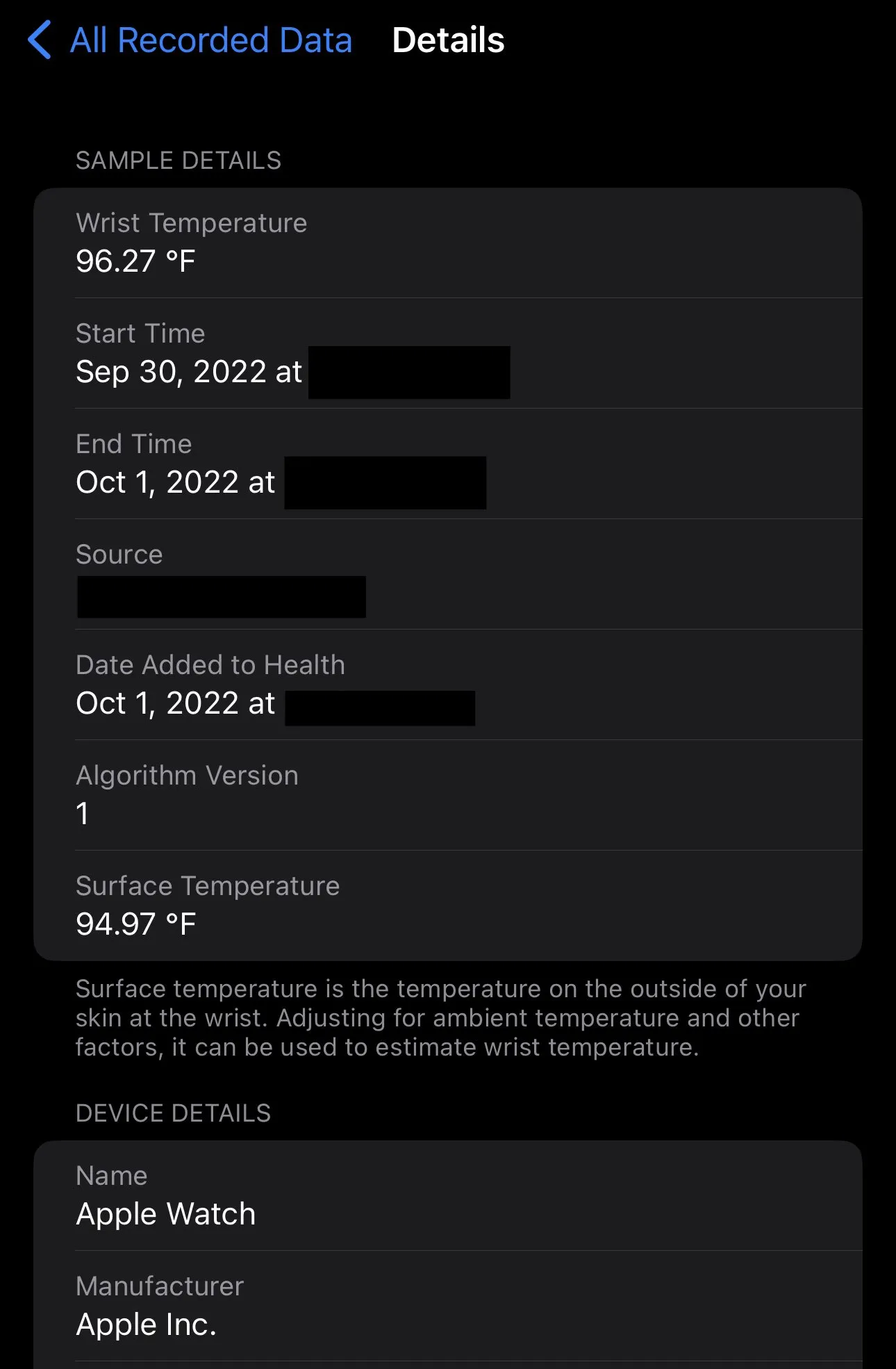 The new Apple Watches can actually show exact wrist temperature but the data is hidden. In the Health app, go to Wrist Temperature/Show All Data. The app itself only shows variation from an unspecified baseline. And you can’t see it on the watch itself. pic.twitter.com/ksimeszL0I