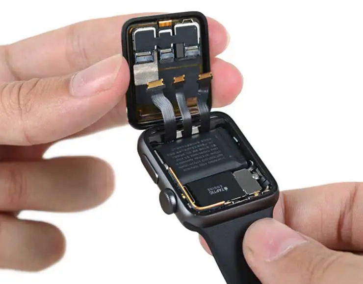 Dal teardown si evince un maggiore uso di colle e adesivo, probabilmente perché, come noto, il nuovo smartwatch è presentato come resistenza all’acqua fino a 50 metri e ideale per il nuoto. Apple ha integrato anche una protezione metallica vicino alla Corona Digitale, anche questa una misura di sicurezza per migliorare le funzionalità waterproofing.