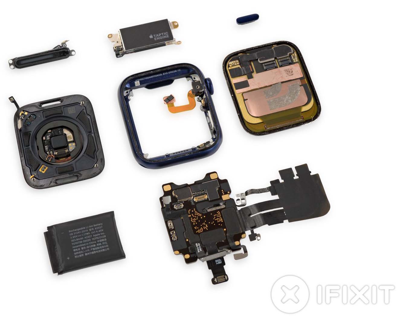 La “vittima” del teardown (qui i dettagli) è il modello con cassa da 44mm GPS + Cellular, acquistato in un negozio in Germania. iFixi ha acquistato anche il modello con cassa da 40 mm e proporrà successivamente dei confronti.