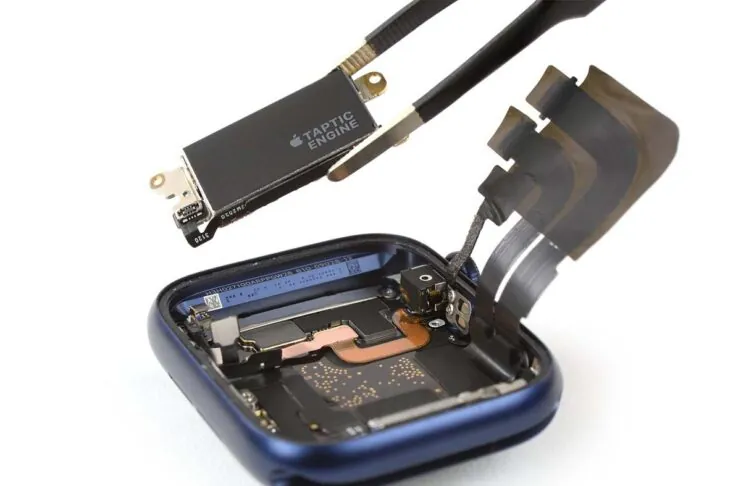 Il Taptic Engine sembra simile a quello del precedente modello e a quanto pare è realizzato con metalli delle terre rare riciclati al 100% e questa volta in tungsteno.
