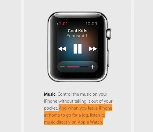 Direttamente dalle pagine web ufficiali dedicate ad Apple Watch arrivano dettagli sulle funzionalità standalone dell’orologio, che in alcuni ambiti, potrebbe anche funzionare autonomamente rispetto ad iPhone. Se è vero, almeno al 90%, che Apple Watch è solo un accessorio dello smartphone, è altrettanto vero che la società di Cupertino sta tentando di espandere le funzionalità autonome dell’indossabile. Come, infatti, notato dalla redazione di electronista, Apple Watch potrebbe essere un valido alleato per gli amanti del fitness, in grado di riprodurre musica e fornire alcune informazioni sulla corsa, anche senza iPhone al seguito.