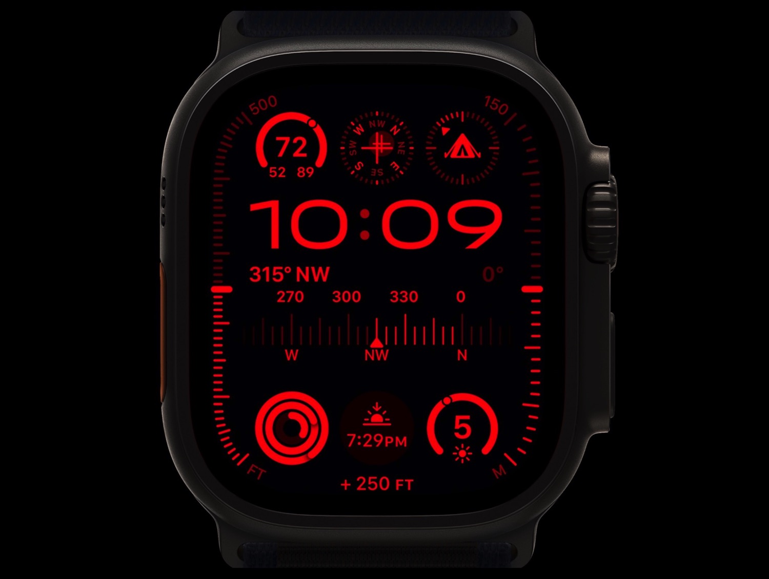 Il display più luminoso, inoltre, consente anche una Torcia migliorata: su Apple Watch Ultra 2 la corona digitale permetterà di rendere ancor più luminoso lo schermo, così da meglio illuminare le zone più buie. Al contrario, quando non si ha necessità di luce, il display può arrivare ad 1 singolo nit di luminosità, così da non infastidire – ad esempio – altre persone presenti all’interno di una stanza.