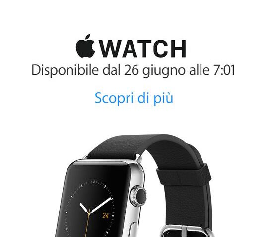 Apple Watch sarà in vendita a partire dalle 7:01 di venerdì 26 giugno. Lo specifica la scheda “Primo Piano” dell’app Apple Store per iOS, accompagnando la notizia con un link che rimanda direttamente alla pagina dedicata sul sito ufficiale.