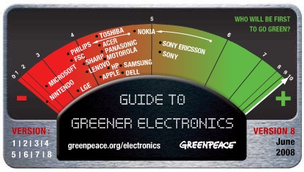 Ad esempio viene ora attribuita rilevanza ai progetti aziendali per la riduzione dei gas serra, piani che poche aziende hanno in essere o che non tutte hanno dichiarato. Viene tenuta in considerazione la strategia per la riduzione dei consumi e la percentuale di energia rinnovabile usata per i processi produttivi. Il risultato è che ora al vertice si trovano Sony Ericsson e Sony con 5,1 punti, uniche due società sopra quota 5 (su 10 punti disponibili) quando invece nella precedente edizione chi era in testa (Toshiba e Samsung) avevano 7,7 punti.