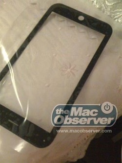 La descrizione che farebbe pensare al tablet come un iPhone agli steroidi, collima con altre immagini arrivate su Internet nel corso della giornata di ieri e pubblicate da MacObserver (immagine qui accanto). Si tratta, apparentemente, della parte frontale del dispositivo di Apple; anche qui si vede il foro per il tasto home ed anche una fessura paragonabile a quella presente su iPhone e dedicata all’altoparlante telefonico.