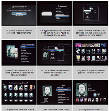 Per un confronto con le versioni precedenti del software si veda la nostra prova completa di Apple TV con software 1.0 e la guida completa con fotogalleria per la versione 1.1 del software.