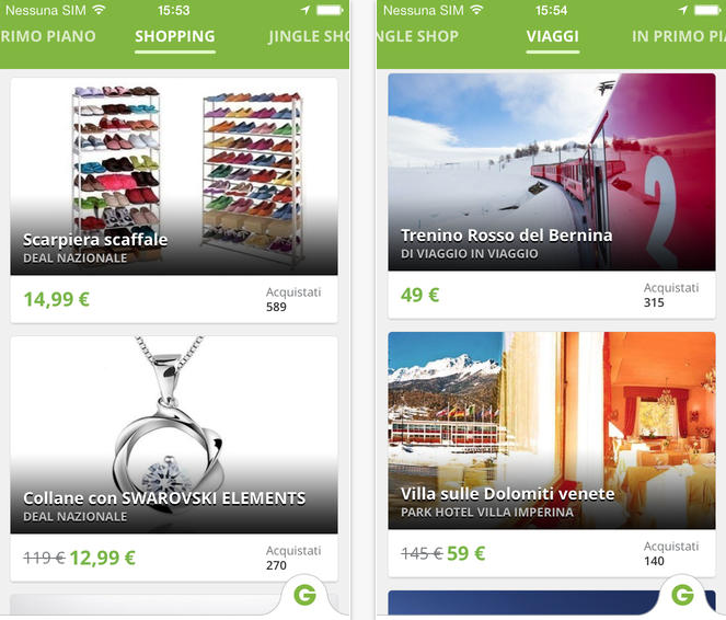 Groupon è ormai il servizio di riferimento per quanti sono alla ricerca di coupon vantaggiosi e relativi a Hotel, Ristoranti o allo shopping vario. Quotidianamente il sito propone una ricca selezione di sconti interessanti sulle migliori cose da fare, vedere e mangiare nella varie città in Italia o anche all’estero. L’applicazione ufficiale per iOS si dimostra una risorsa davvero utile per trovare l’hotel ideale e i ristoranti migliori quando si va in vacanza, con risparmi possibili non indifferenti. Groupon per iOS è disponibile gratis in App Store e si scarica direttamente da questo indirizzo.