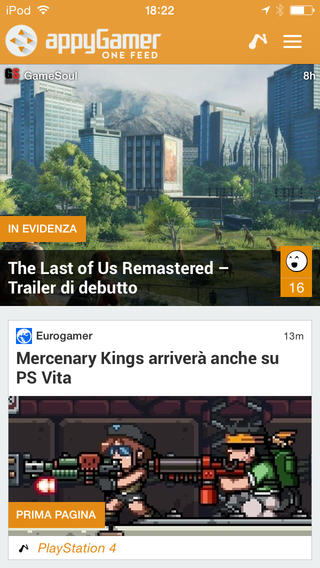 Appy Gamer è un’applicazione per iPhone e iPad che raccoglie tutte le notizie riguardanti il settore dei videogame da diverse fonti quali Eurogamer, GameSoul, Gamempire, Console-Tribe e molti altri, con oltre 120.000 temi disponibili per creare i propri canali tematici seguendo ad esempio Titanfall, PlayStation 4, Xbox ed altro.