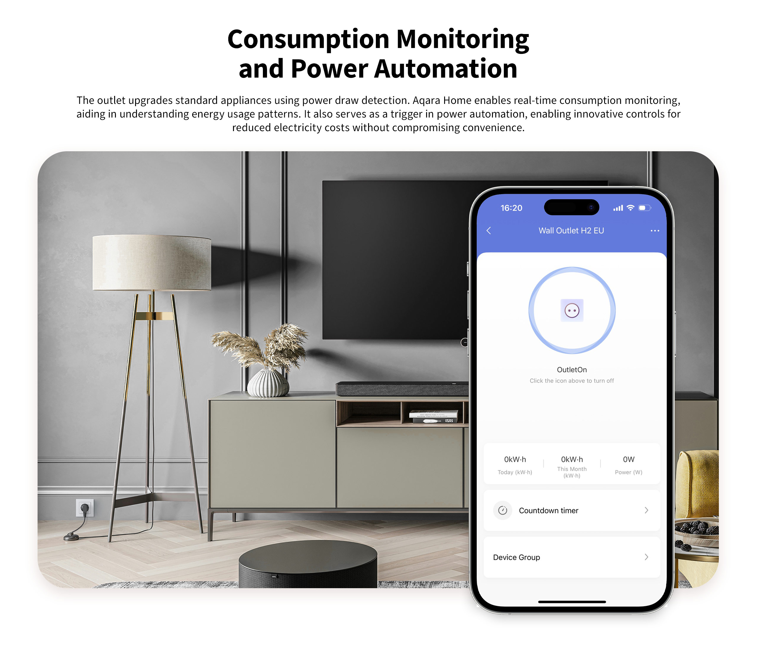 La presa a muro H2 EU fornisce dati cronologici e in tempo reale sui consumi energetici; con i report energetici che è possibile ottenere dall’app Aqara Home, è possibile individuare sprechi di energia in casa e modificare le abitudini di utilizzo per risparmiare sulla bolletta elettrica.