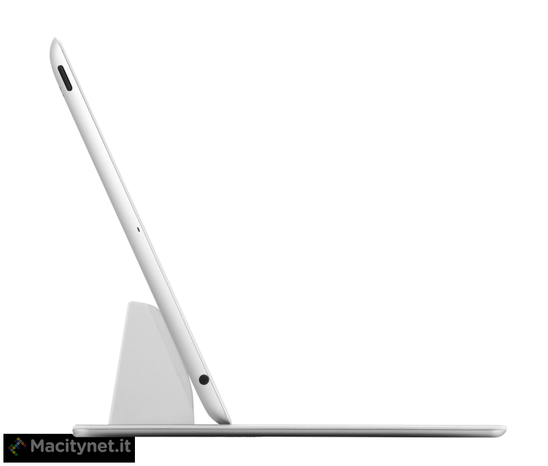 Tra le caratteristiche principali segnaliamo la presenza del cavalletto regolabile che permette all’utente di modificare l’inclinazione del tablet per migliorare la visualizzazione dello schermo. Grazie al magnete integrato la Ultrathin Keyboard si fissa saldamente sulla parte frontale di iPad quando è chiusa per il trasporto: basta sganciarla per accendere la tastiera in automatico e cominciare a lavorare.