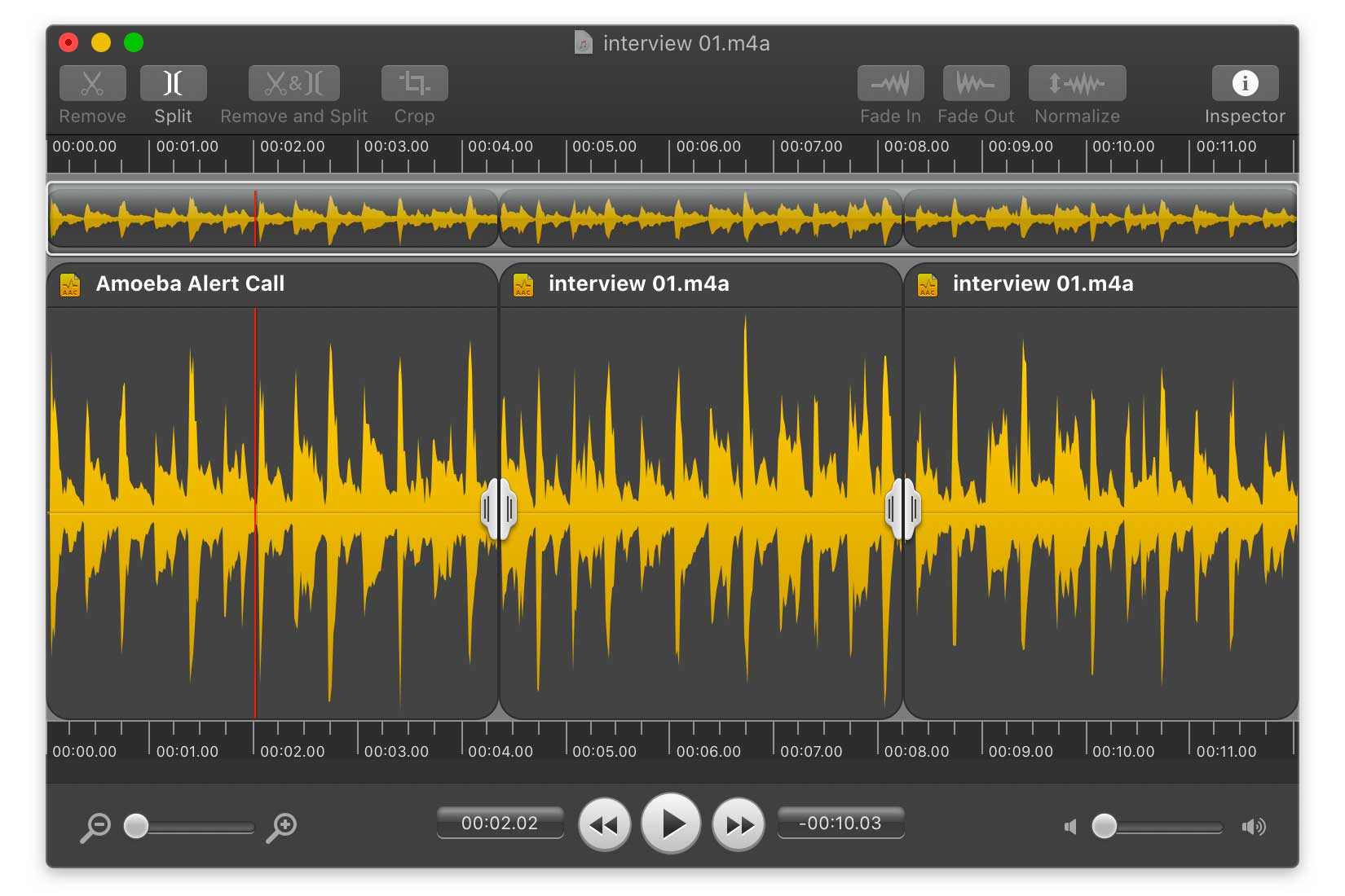 È possibile eseguire il trimming dei file, aggiungere effetti fade-in/fade out, gestire formati come AIFF, MP3, AAC e Apple Lossless senza perdita di qualità durante l’operazione di salvataggio (poiché non è eseguita la ricodifica il formato originario resta intatto). Non mancano funzioni per il salvataggio di porzioni audio come suonerie per iPhone, per l’editing dei tag ID3, suddivisione in cue sheet e molto altro.