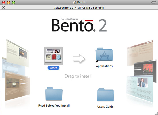 In questo articolo come detto limitiamo la nostra attenzione alle novità più importanti di Bento 2 ma vale la pena ricordare che la gamma di funzioni e la facilità di utilizzo rappresentano un progresso consistente rispetto all’edizione precedente. Bento 2 è disponibile da subito in lingua italiana e funziona solamente con Mac OS X 10.5.4 Leopard: richiede un sistema minimo con processore G4 a 867 MHz, 512 MB di RAM, raccomandato 1GB, e 1 GB di spazio su disco.