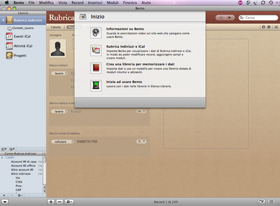 Con il nuovo Bento 2 tutto questo scompare: l’utente può leggere e consultare, modificare dati ma anche modelli, campi e archivi il tutto direttamente dall’unica finestra e nell’unica modalità di lavoro disponibile. Per apprezzare appieno questa novità occorre una prova diretta al computer ma fin da ora possiamo affermare che si tratta di un cambiamento fondamentale, in grado di semplificare enormemente il lavoro.