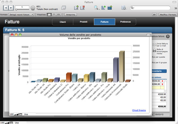 Tra le novità  più rilevanti di FileMaker 11 è d’obbligo ricordare una valida funzione per la creazione automatica dei grafici. A partire da qualsiasi dato contenuto nel database l’utente può selezionare i confronti e i campi desiderati: a questo punto il software genera una efficace rappresentazione grafica. L’operazione è potente e si effettua con pochi passaggi: si tratta di uno strumento molto utile per effettuare analisi dei dati e anche per il monitoraggio, evitando così la necessità  di dover consultare puri elenchi numerici. La generazione dei grafici avviene anche in modalità  push per le versioni server di FileMaker. Se un dato viene aggiornato da agenti o dipendenti in remoto, il grafico visualizza immediatamente anche la variazione apportata. Dopo averla vista all’opera possiamo affermare che la creazione automatica dei grafici integrata in FileMaker 11 è una novità  che, anche da sola, potrebbe convincere molti utenti di vecchie versioni all’aggiornamento e chi è nuovo all’applicazione a comprarla.