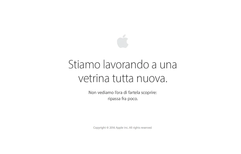 Arrivano i nuovi iPhone 7 e come consueto Apple chiude i propri store online; da questo momento, infatti, sarà impossibile accedere allo shop web di tutti i paesi. La classica pagina dove poter acquistare i prodotti Apple mostra solo il messaggio che anticipa i nuovi prodotti: “Stiamo lavorando a una vetrina tutta nuova”.