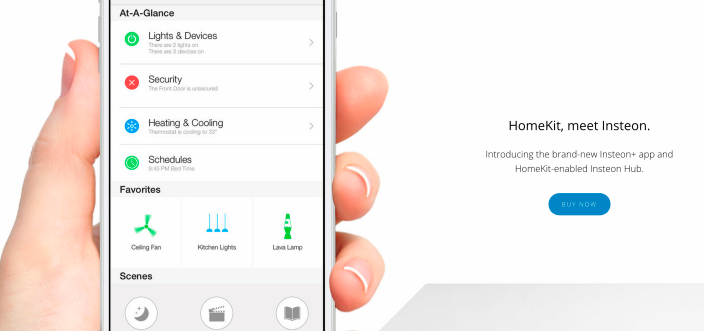 Insteon propone una sorta di hub con un’applicazione che permette agli utenti di controllare i dispositivi dello stesso produttore, così come altri compatibili HomeKit. «Non vediamo l’ora di inviare il nostro prodotto abilitati HomeKit “Insteon Hub”, rilasciare l’app mobile Insteon+, distribuire il dispositivo sui mercati di consumo e permettere di sperimentare il mondo dei dispositivi connessi in perfetta armonia» ha detto Joe Dada, CEO di Insteon. «HomeKit semplifica l’home automation per i consumatori, riunendo più costruttori e offrendo funzionalità avanzate quali il controllo remoto e il controllo vocale mediante Siri».