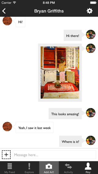 L’interfaccia di ArtStack – discover art è semplice, lineare ed elengante: le opere d’arte si possono caricare e condividere facilmente, aggiungendo manualmente le informazioni su dipinti o sculture, oppure autorilevando le informazioni sulle opere (nome dell’artista e titolo), ma si possono anche organizzare per poterle consultare quando e come si desidera. ArtStack – discover art, oltre ad essere un museo virtuale è anche un social network e come tale offre agli iscritti anche la possibilità di comunicare fra di loro: una chat con amici e molti altri utenti della comunità internazionale di ArtStack, con cui scambiarsi opinioni su mostre, esposizioni, sulle tendenze di arte contemporanea oppure con cui condividere immagini delle ultime opere d’arte viste.