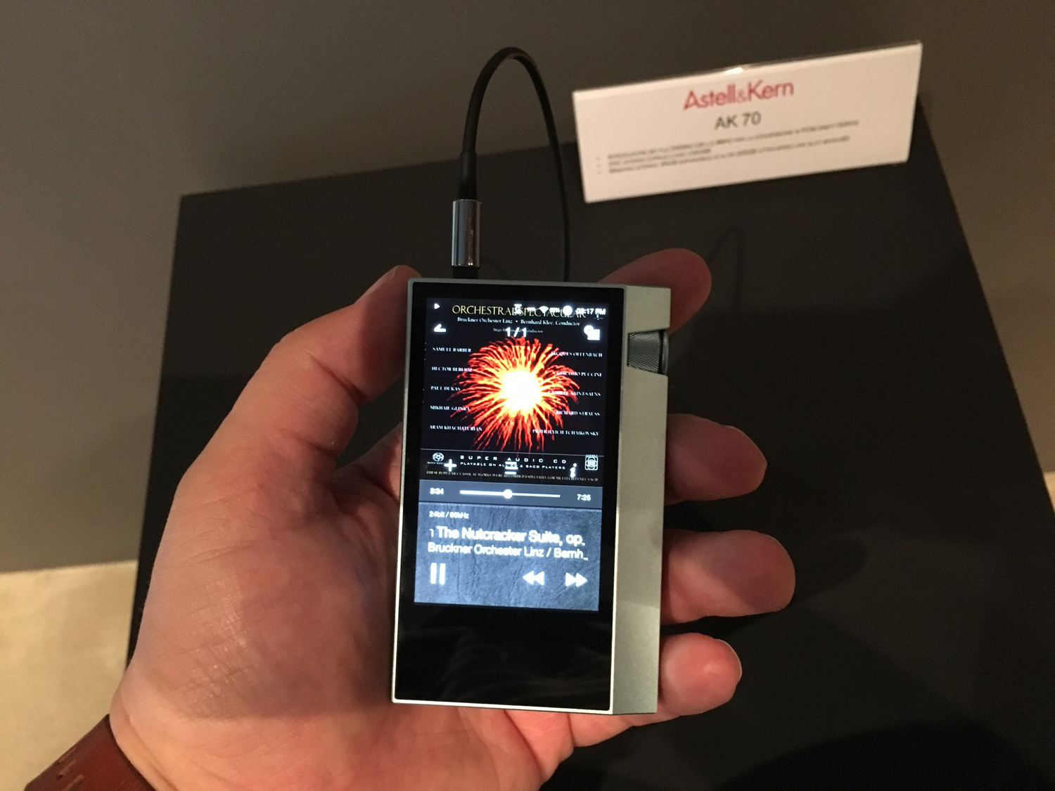 Si passa poi ai modello AK70, con uscita digitale USB, jack 3,5 mm e 4 poli bilanciato da 2,5 mm, DSD a 125/5.6MHz, con 200 GB aggiuntivi con MicroUSB a 699 Euro. Questo modello integra anche un modulo Wi-Fi a 2.4 Ghz.