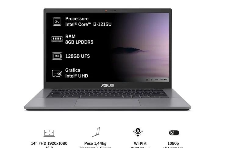 Su Amazon il ASUS Chromebook Plus CX3402 costa 279€ invece di 449€ parliamo di un notebook equipaggiato con display da 14 pollici Full HD e scocca compatta, un’opzione versatile per studio, lavoro e intrattenimento.