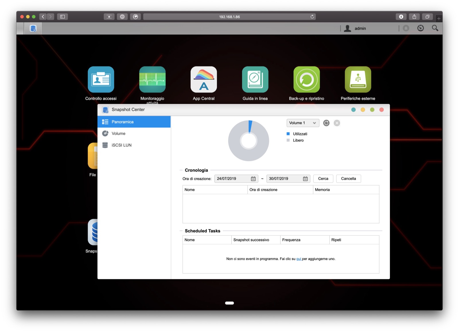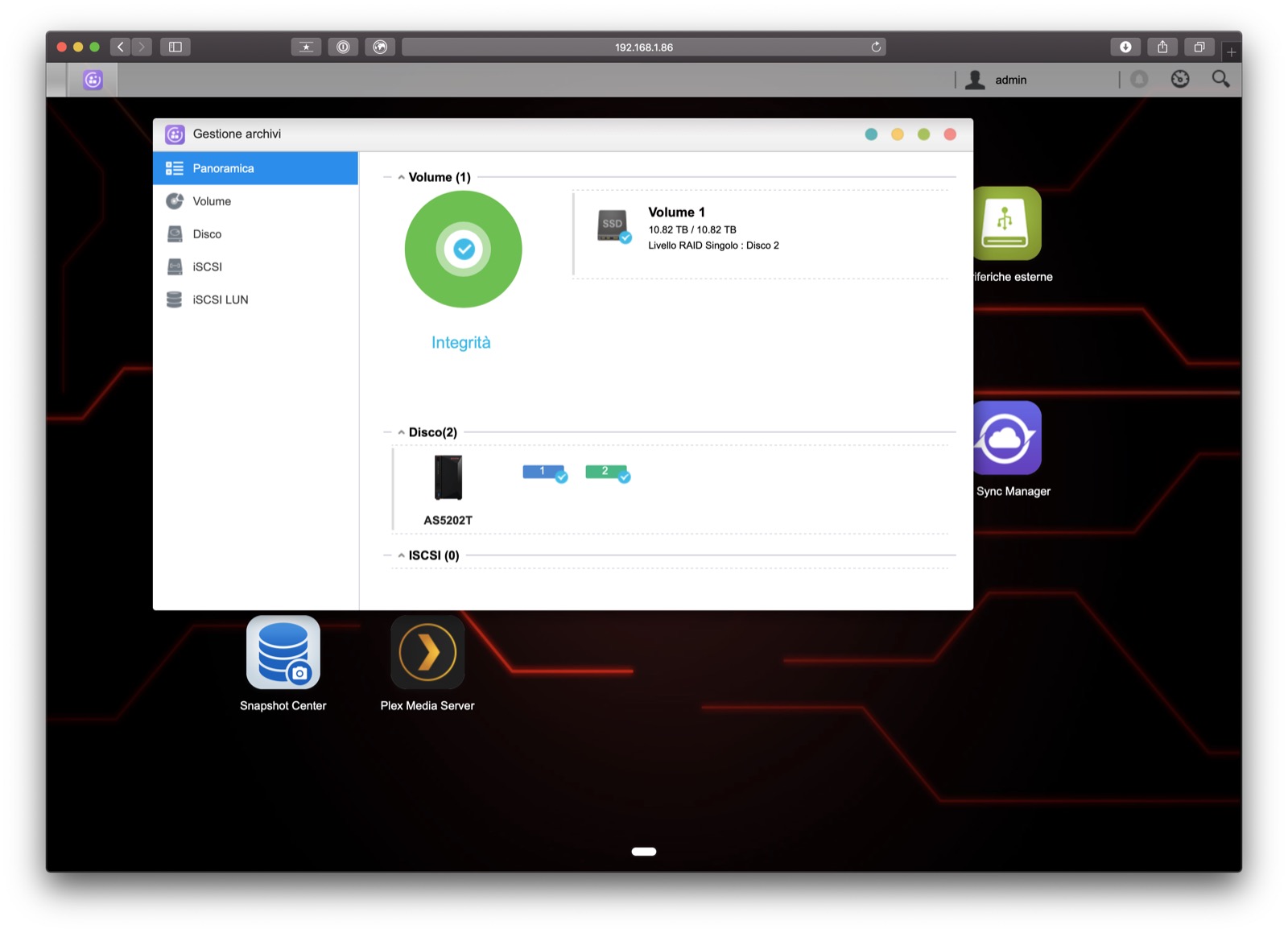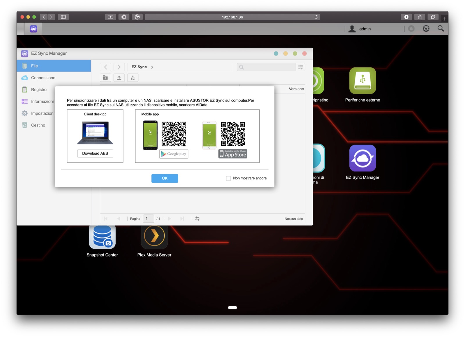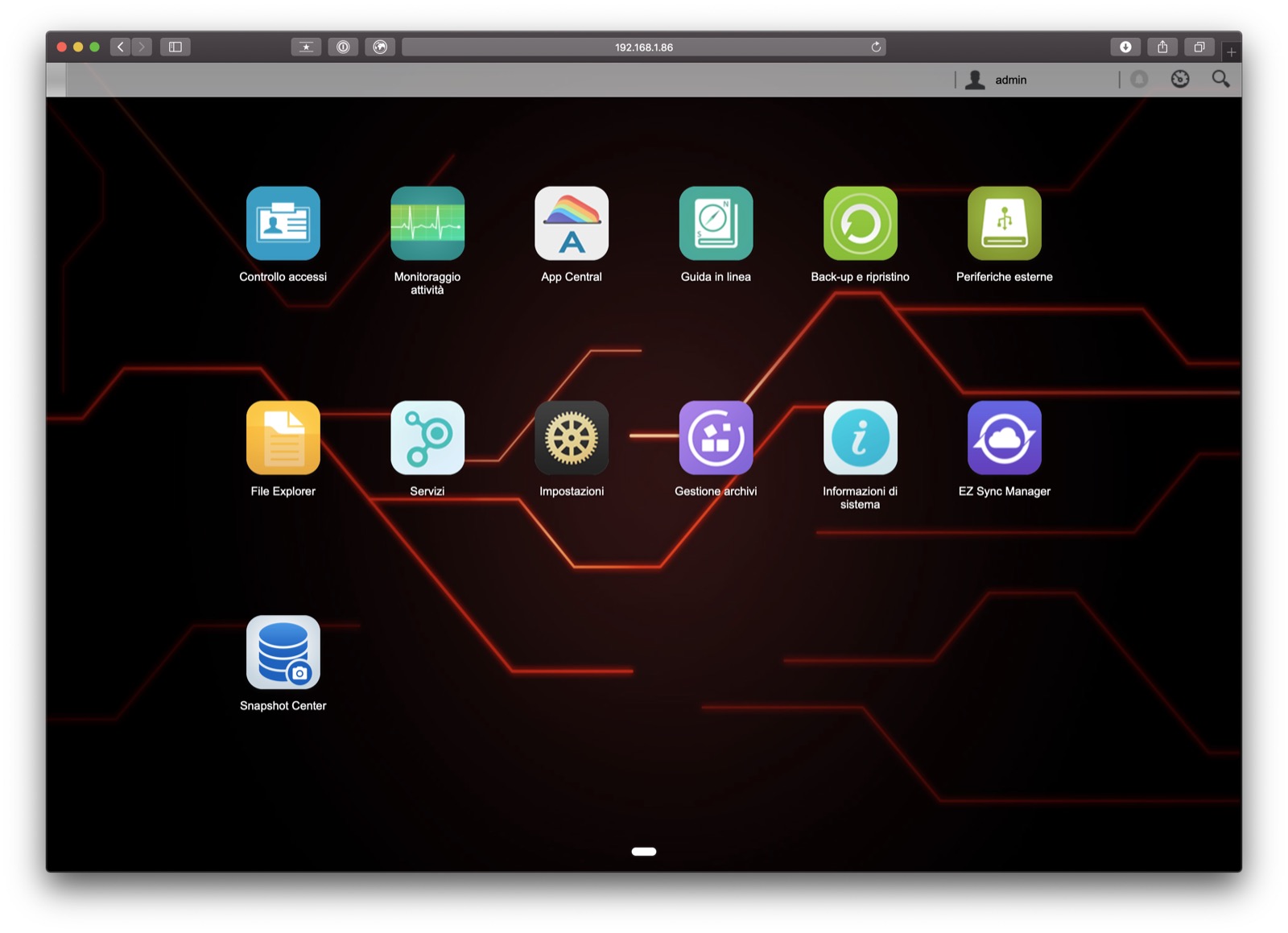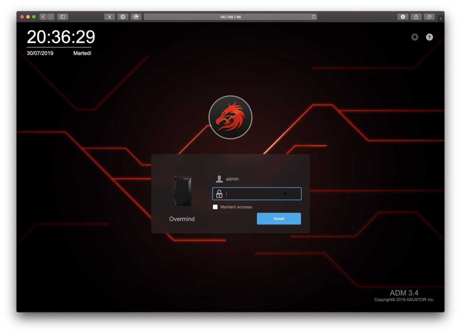 Una volta acceso abbiamo notato, per la prima volta in un NAS Asustor, che uno dei temi disponibili è costuimizzato ed esclusivo per il modello, con un tono nero e rosso (con tanto di logo) che richiama il look esterno.