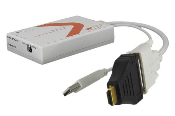 Grazie al nuovo adattatore Atlona DP200HD è possibile collegare dispositivi dotati di uscita video HDMI e DVI al monitor Apple LED Cinema Display da 24 pollici e anche al nuovo iMac da 27″, entrambi dotati di connettore video Mini DisplayPort.