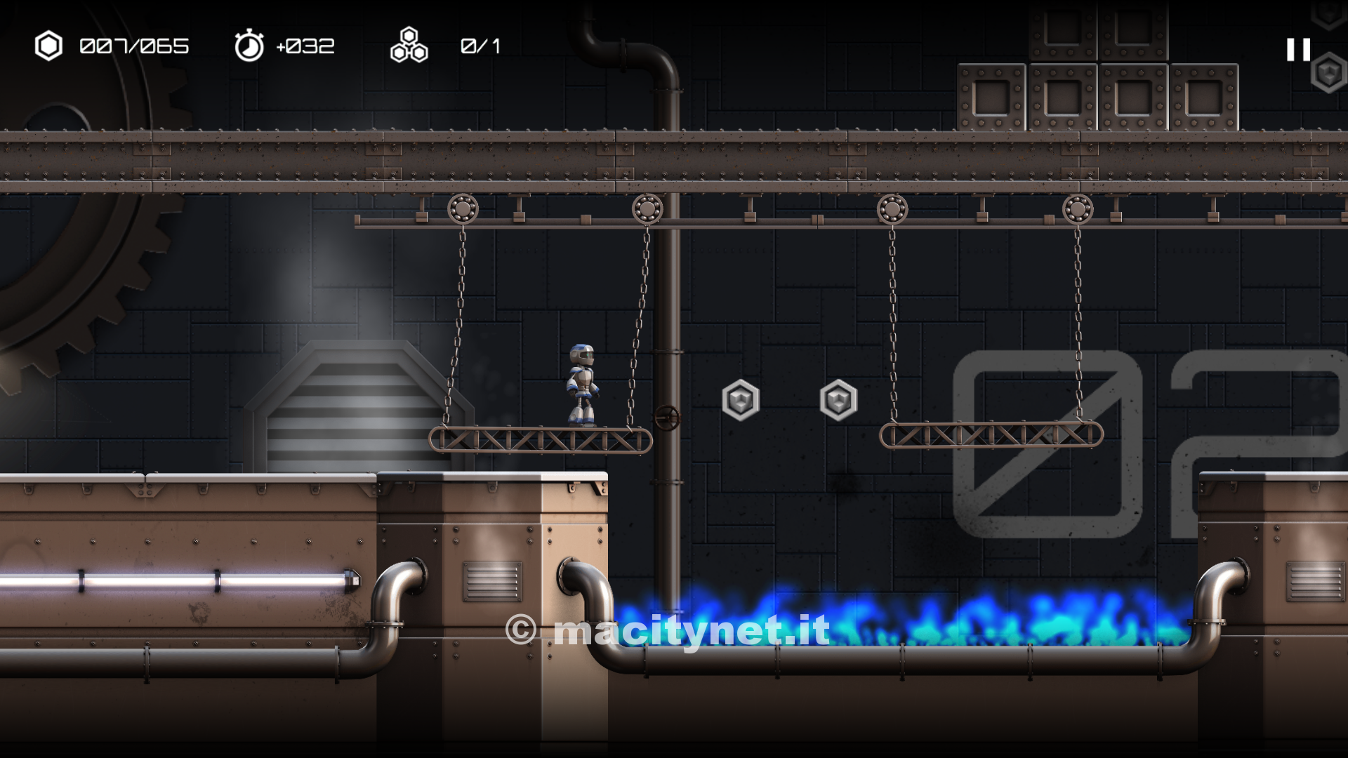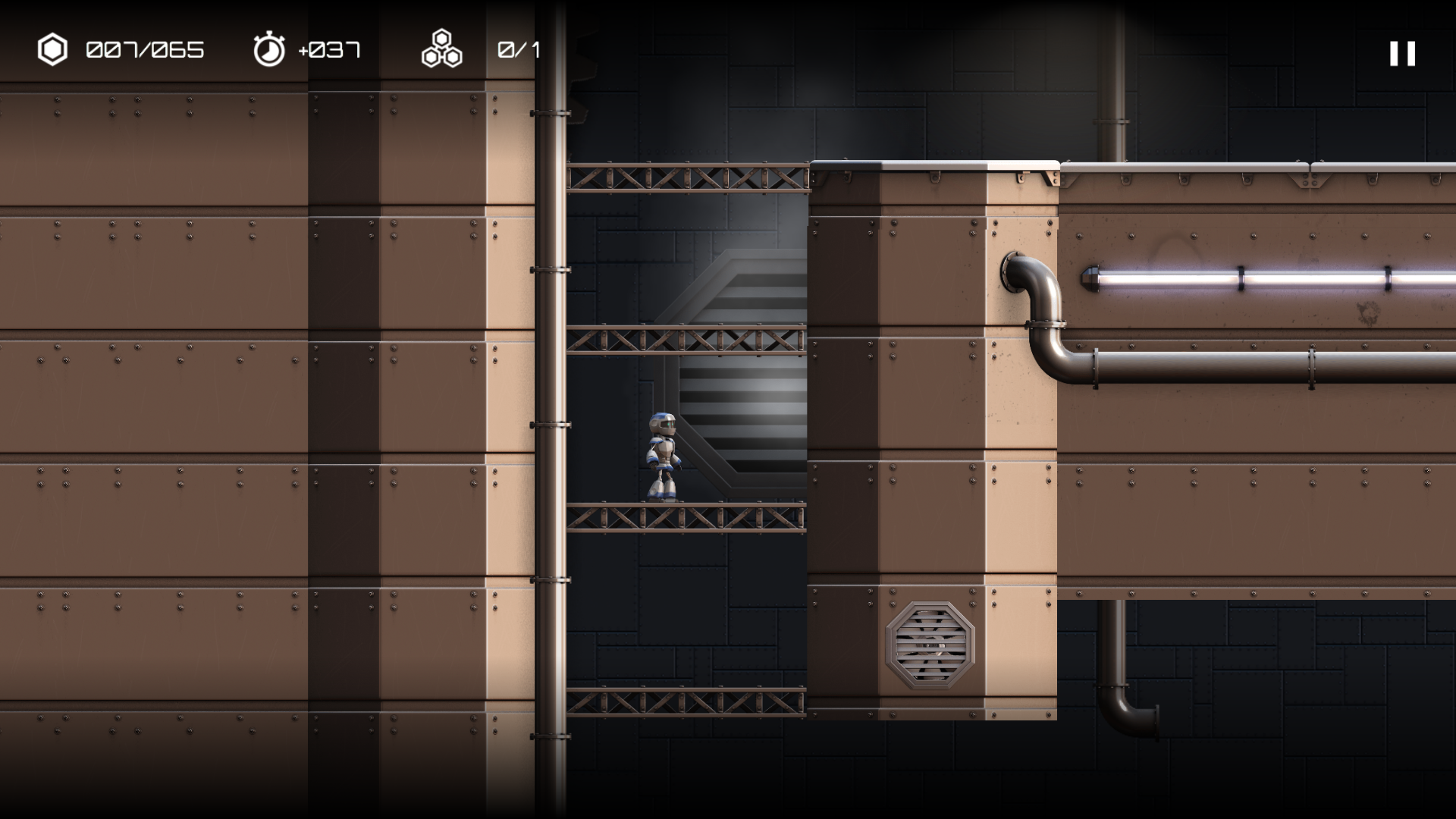 Anche se è possibile parlare di un platform in piena regola, dato che il personaggio a schermo non corre in automatico, in realtà Atom Run presentà anche una vena runner, dato che ogni livello presenta un tempo limite entro il quale terminare lo stage e raggiungere l’uscita di quella determinata area. Insomma, anche se indirettamente il titolo impone di completare lo stage il più velocemente possibile. Inoltre, la natura più runner, e meno platform, è anche suggerita dalla impossibilità di soffermarsi per abbattere i nemici presenti a schermo. Difatti, i vari robot che si incontreranno lungo il cammino, andranno completamente schivati, senza possibilità di affrontarli. Le vite sono, invece, infinite, ragion per la quale sarà possibile andare incontro alla morte innumerevoli volte; l’unico lato negativo sarà riprendere la marcia dall’ultimo ceckpoint attivato.