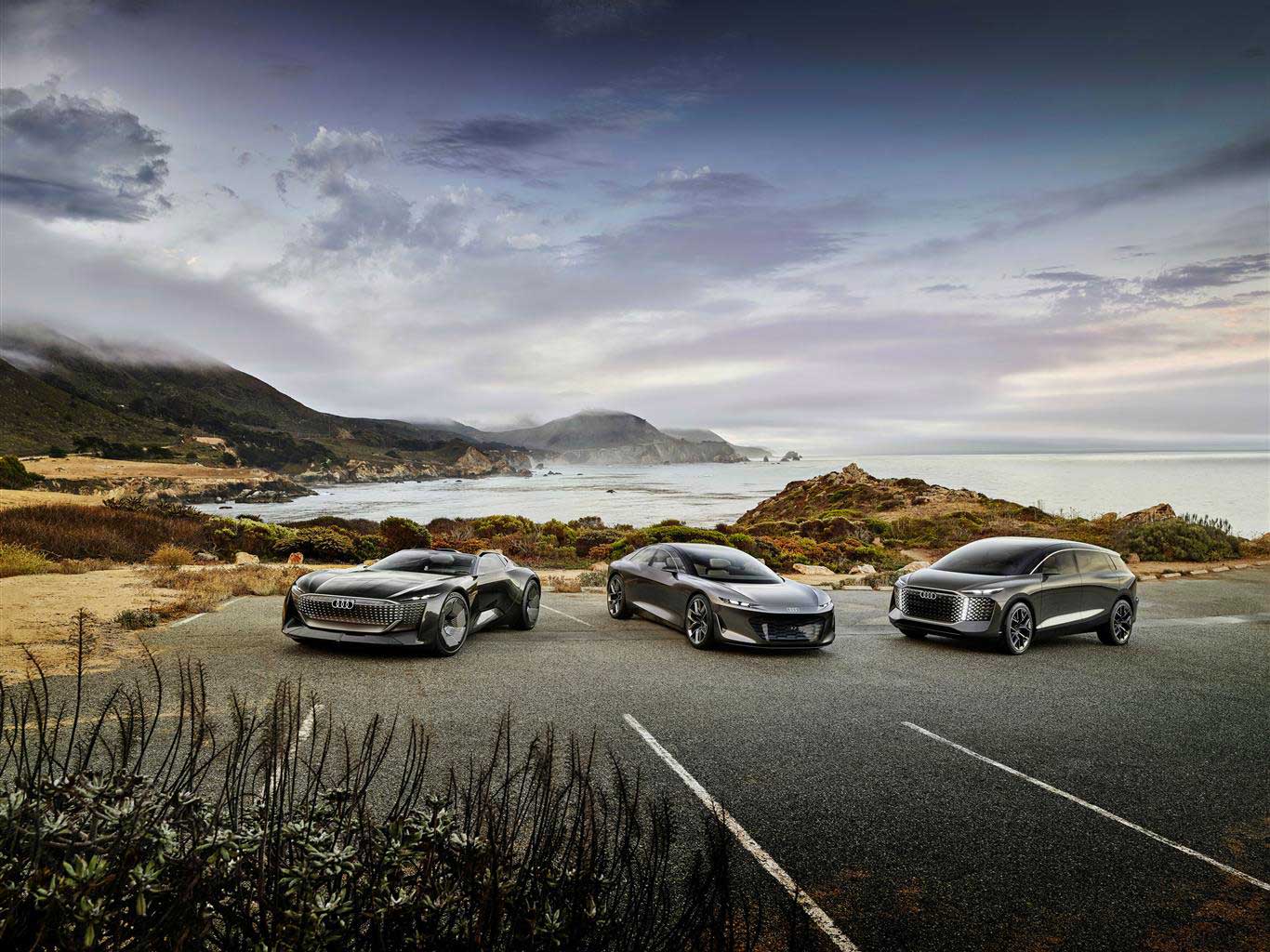 Parallelamente all’annuncio dell’inedita show car, in occasione della Monterey Car Week in California, la Casa dei quattro anelli mostra al pubblico, per la prima volta riuniti insieme, i tre prototipi già noti della serie sphere, ovvero le concept Audi skysphere, Audi grandsphere e Audi urbansphere.