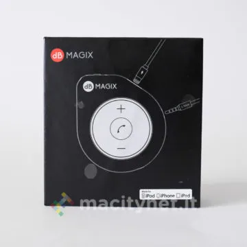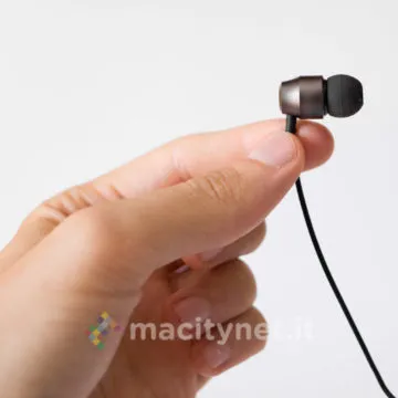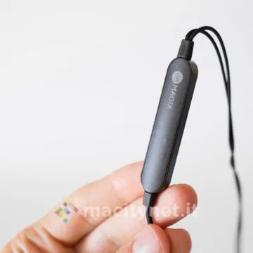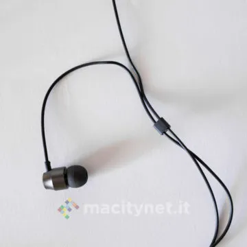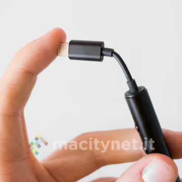 E’ piuttosto piccolo (10.5 x 1 centimetri) e leggero (11 grammi), la spina Lightning è piccola e il corpo principale è realizzato in robusto metallo, con tre pulsanti che permettono di gestire il player musicale senza dover interagire con il touchscreen del telefono.