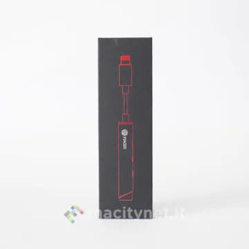 Questo adattatore è esteticamente diverso dal precedente: dalla forma “a goccia”, è realizzato interamente in plastica satinata ed è molto leggero. La spina Lightning è nascosta al suo interno e per estrarla ci si dovrà aiutare con una sorta di leva che si spinge tramite un piccolo interruttore posto lateralmente. Adiacente a quest’ultimo ci sono anche la presa jack da 3.5mm e quella Lightning per collegare il cavo di ricarica. Da un lato c’è anche un forellino per agganciarlo eventualmente a un mazzo di chiavi con un cordino (non incluso nella confezione).