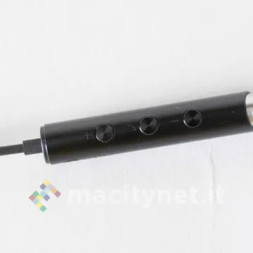 Il connettore Lightning è piuttosto piccolo, quindi si collega agevolmente agli iPhone protetti dalla maggior parte delle custodie attualmente in commercio. Sul telecomando, oltre al foro per il microfono, ci sono i tasti volume e il tasto multifunzione, più grande, che permette di interagire con Siri e gestire la riproduzione musicale.