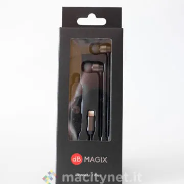 In questi giorni abbiamo provato alcuni accessori di dB Magix per iPhone 7 dedicati al mondo della musica. Uno di questi è PLX1, un paio di auricolari in-ear accompagnati da un’app che permette di amplificare le frequenze con un click; gli altri due (AC1 e AC3) sono adattatori che permettono di collegare le cuffie con cavo jack da 3.5mm attraverso la porta Lightning, uno dei quali offre una presa Lightning passante per poter contemporaneamente ricaricare il telefono.